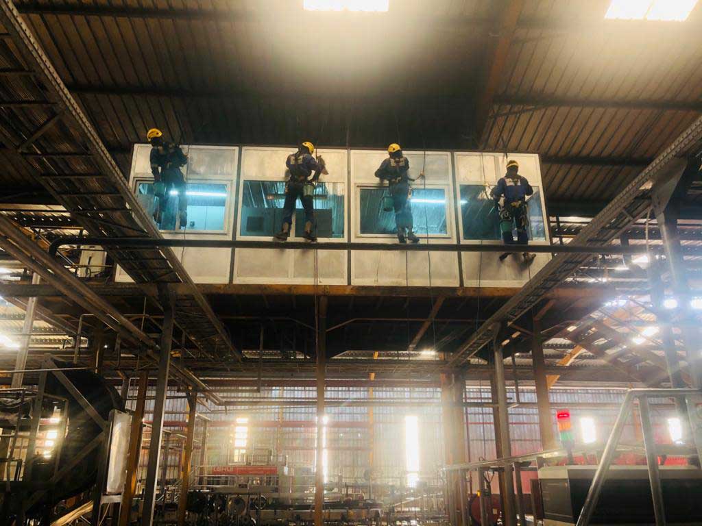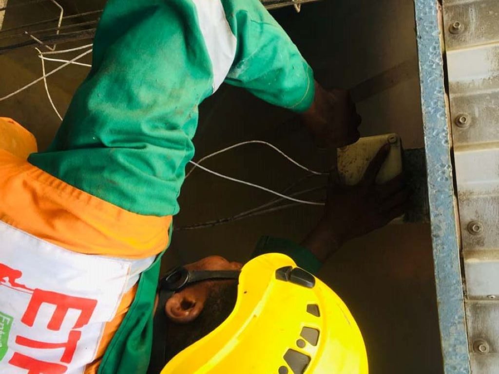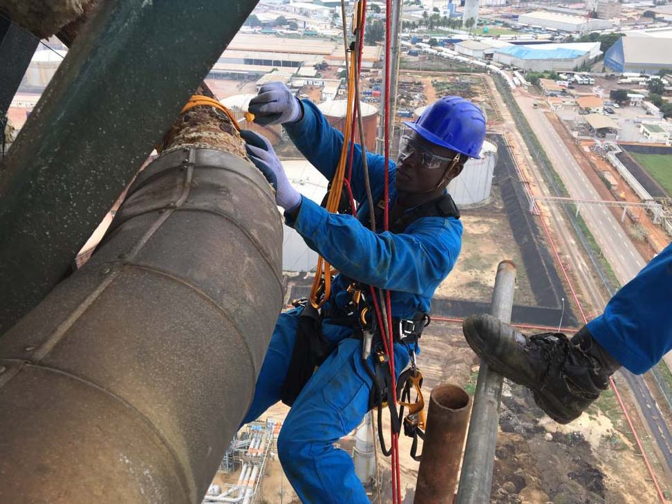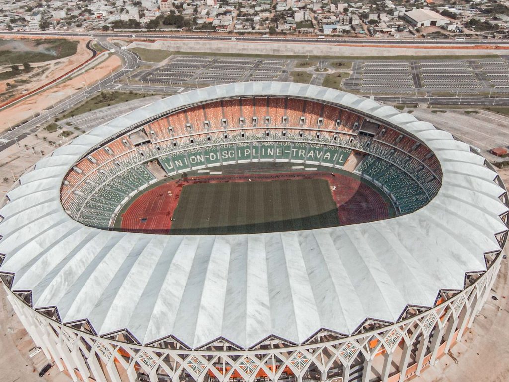 NETTOYAGE PAR CORDAGE DE LA BACHE DE COUVERTURE DU STADE OLYMPIQUE ALASSANE DRAMANE OUATTARA D’EBIMPE